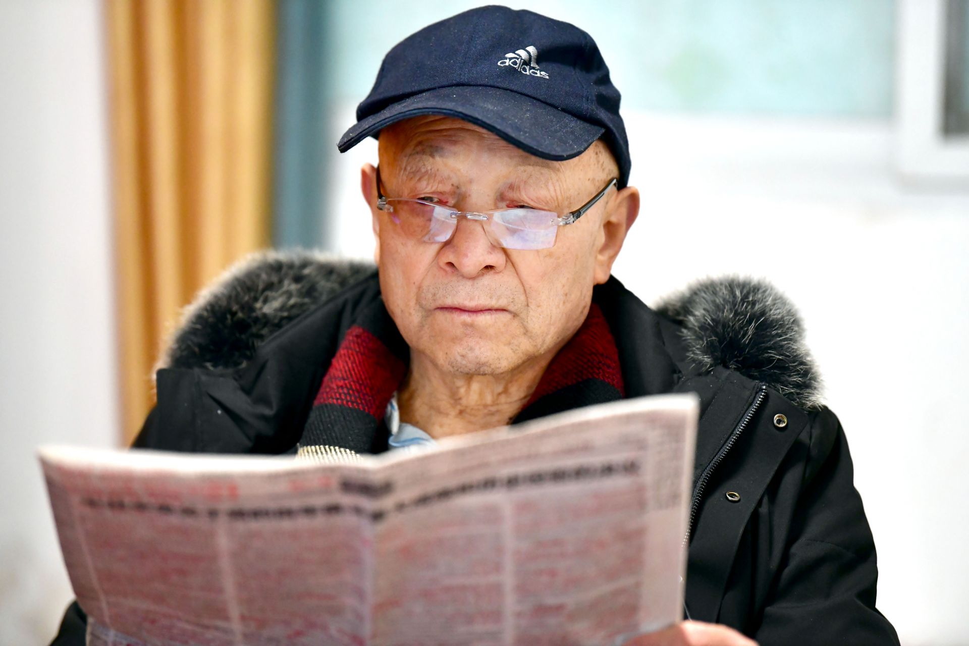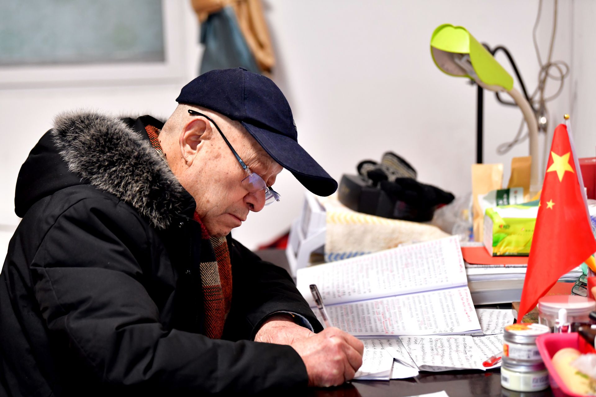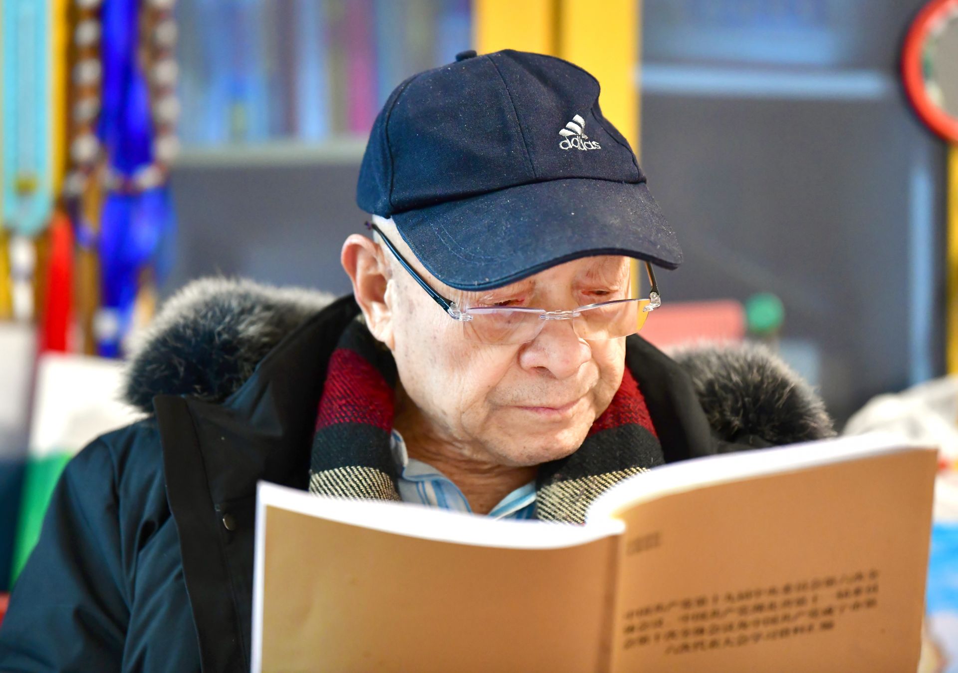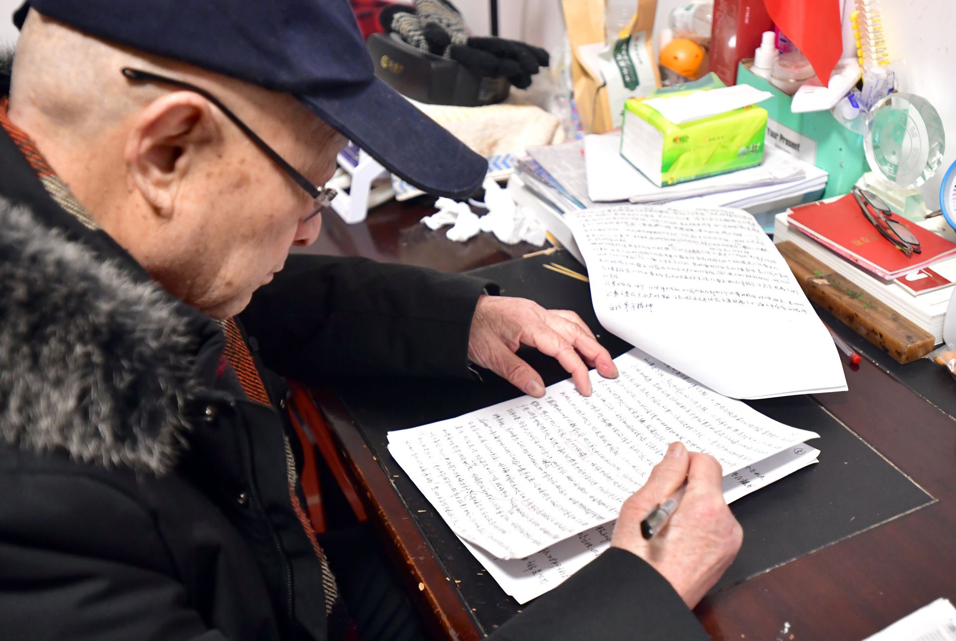 2月10日下午,筆架山街的一棟老房子里,一位老人正伏案閱讀。