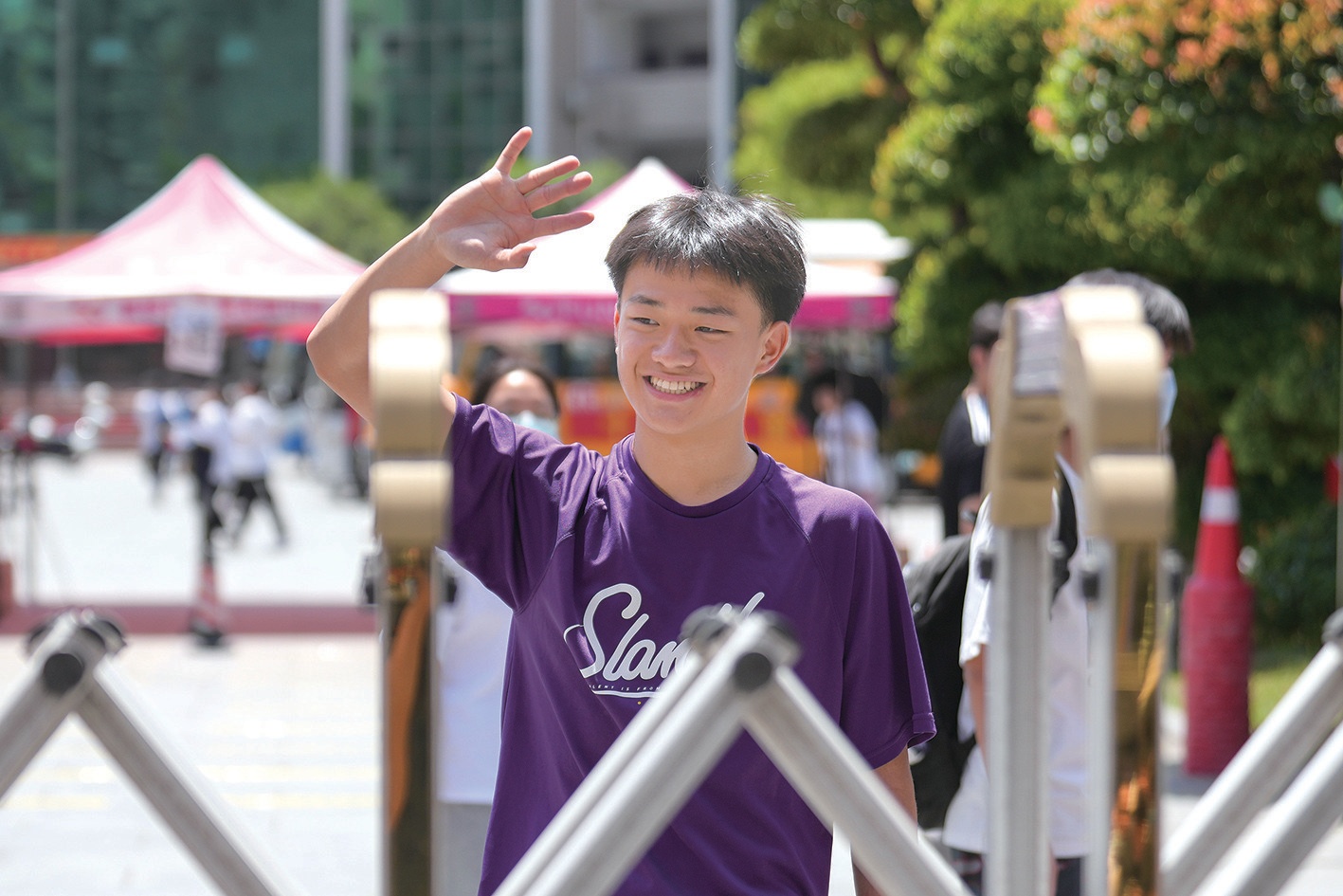 考點里,學(xué)生們有序排隊、測溫、驗證,依次進入考場;考點外,一條警戒線將老師、家長們隔離在外。盡管天氣炎熱,老師和家長們還是守在校門口,滿懷希望的目光始終跟隨著孩子。