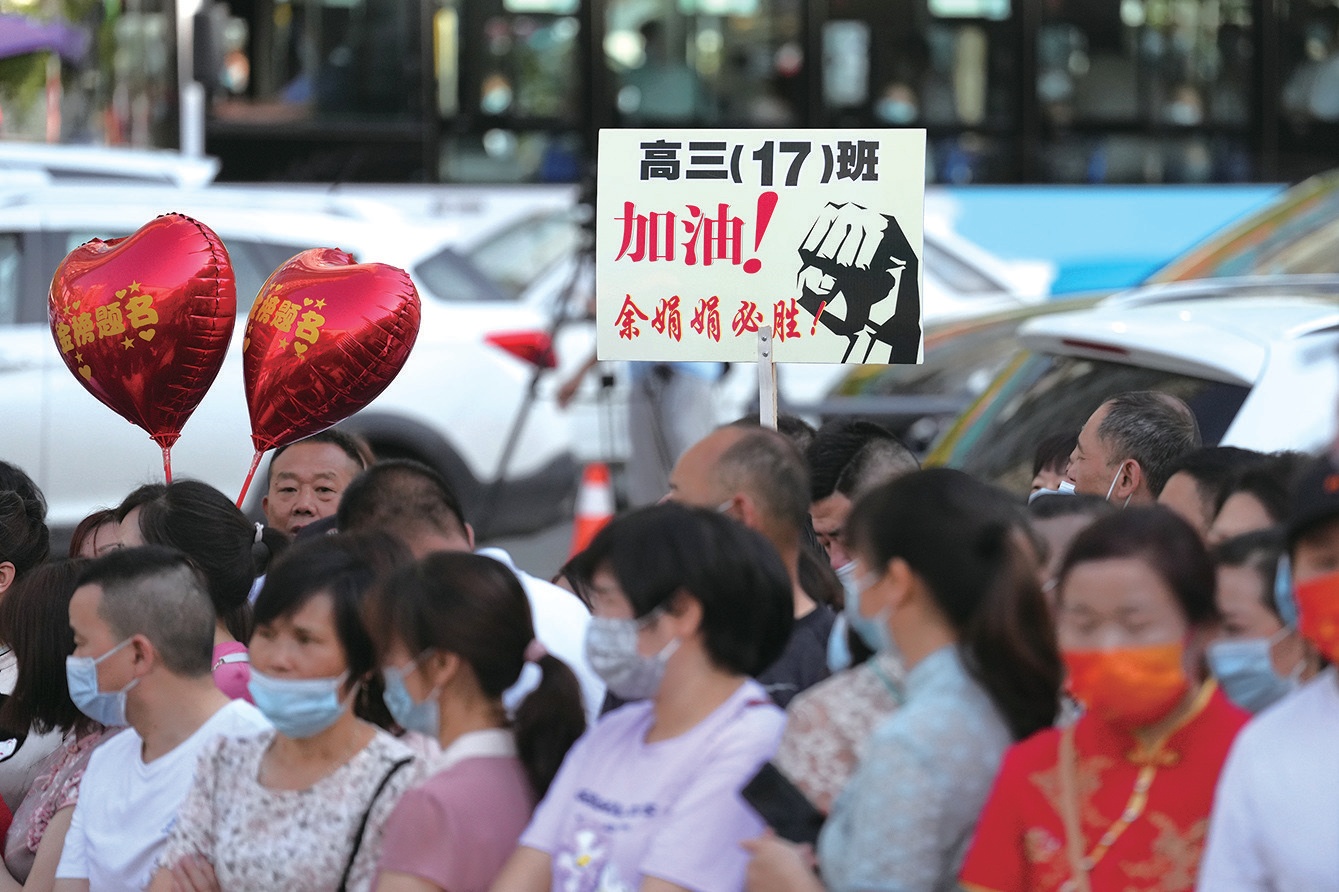“金榜題名”的紅氣球、“必勝”的標(biāo)語牌、寓意“旗開得勝”的旗袍,送考的家長們把濃濃的愛、殷切的期望化做各種加油鼓勁。高考,不僅是考生一個人的事,更是全家人共同的目標(biāo)。