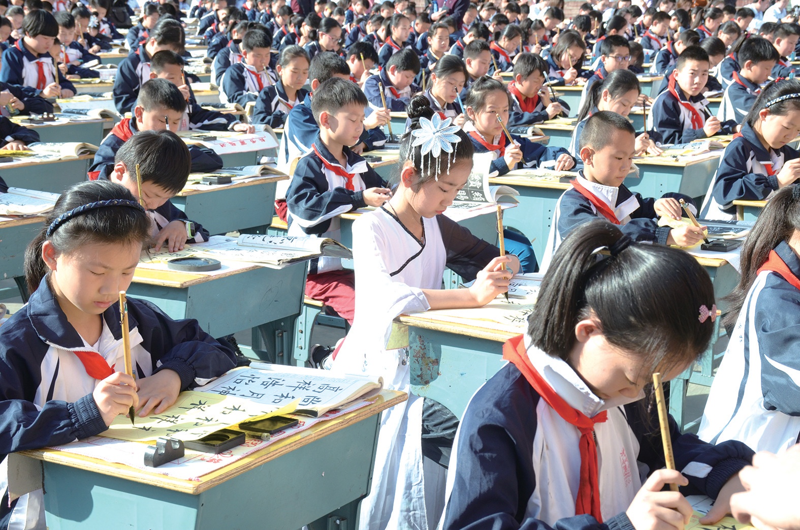 書寫是一個(gè)循序漸進(jìn)的過程,在孩子小學(xué)階段有意識(shí)地培養(yǎng),讓孩子養(yǎng)成良好的書寫習(xí)慣,其將會(huì)受益一生?!拔覀儗W(xué)校每天堅(jiān)持中午練20分鐘書法,孩子們學(xué)習(xí)書法的第一個(gè)內(nèi)容,就是坐姿訓(xùn)練。”東風(fēng)52小學(xué)校長龔明說。