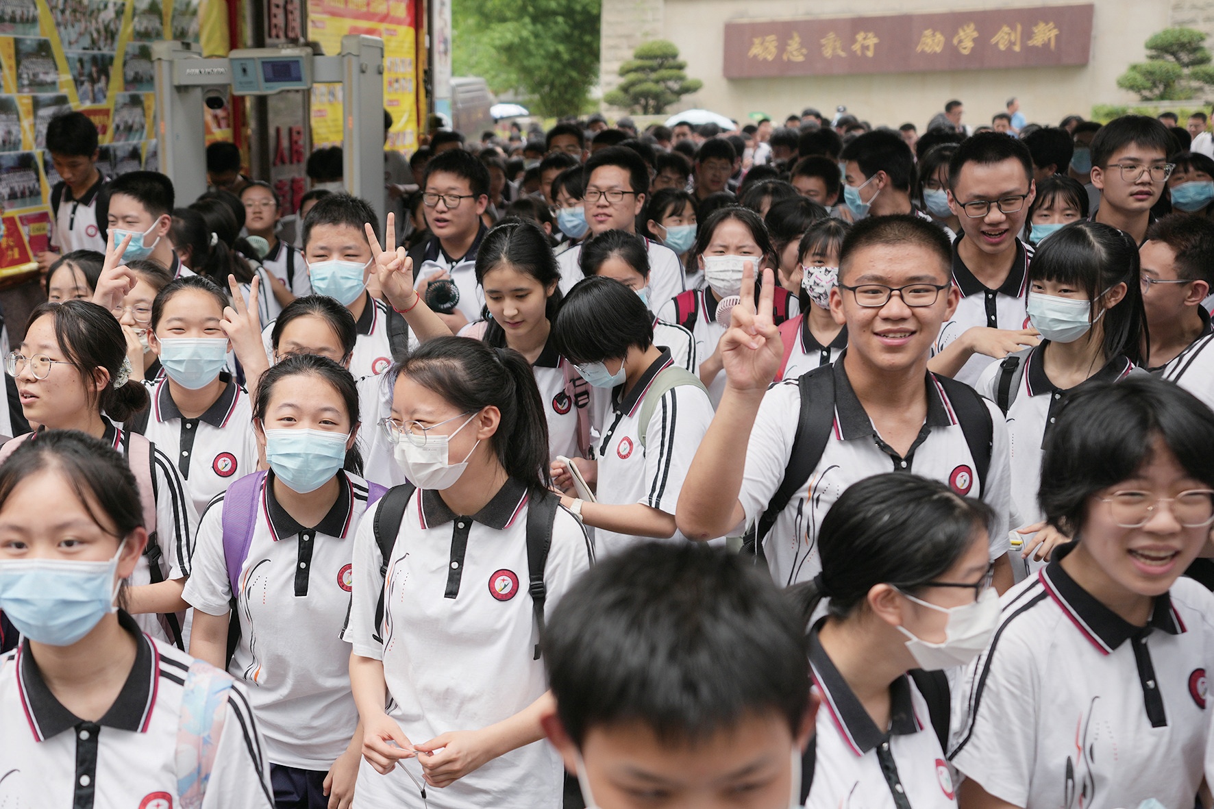 學(xué)生們邁著輕松的步伐,面帶笑容走出考場(chǎng)。