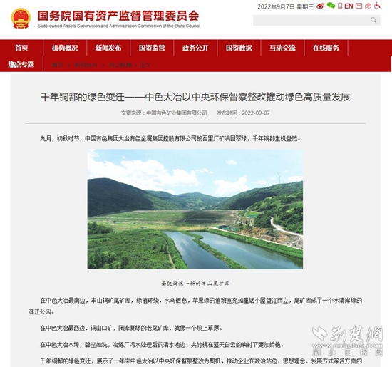 荊楚網(wǎng)(湖北日?qǐng)?bào)網(wǎng))訊(通訊員 王剛 陶三保)12月1日,從中色大冶獲悉,在中央環(huán)保督察通報(bào)公司典型案例一周年之際,反映中色大冶環(huán)保督察整改、綠色發(fā)展成效的通訊《千年銅都的綠色變遷》在國(guó)資委網(wǎng)站、中國(guó)有色金屬報(bào)等多家主流媒體和行業(yè)媒體上刊發(fā)。