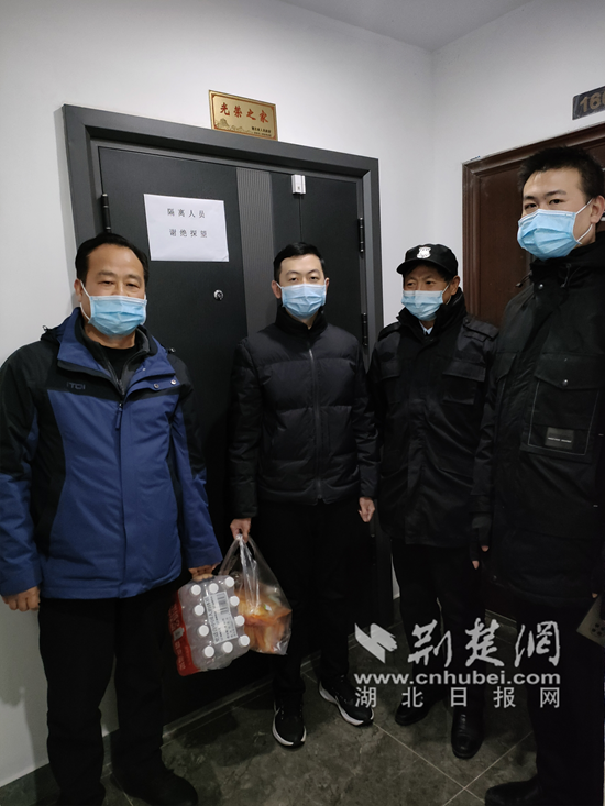 荊楚網(wǎng)(湖北日報(bào)網(wǎng))訊(記者 田城 通訊員 慶雪萌)寒潮帶來的低溫,擋不住真情送暖的腳步。12月1日,咸寧高新區(qū)咸寧之星小區(qū),高新區(qū)黨工委委員、區(qū)疫情防控指揮部副指揮長賴長青與一線防疫人員一起為該小區(qū)居家隔離人員送上“暖心包”,為讓居家隔離人員在家期間做好抗寒保暖。
