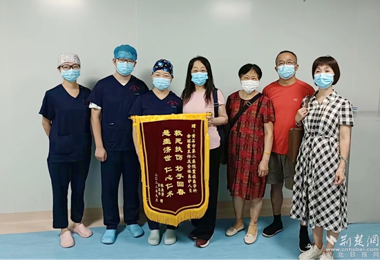 患者康復(fù)后為重癥醫(yī)學(xué)科送來錦旗。通訊員 供圖