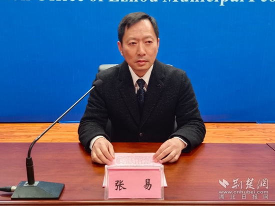 鄂州市勞動就業(yè)中心主任張易通報相關(guān)情況。姜夢瑤 攝