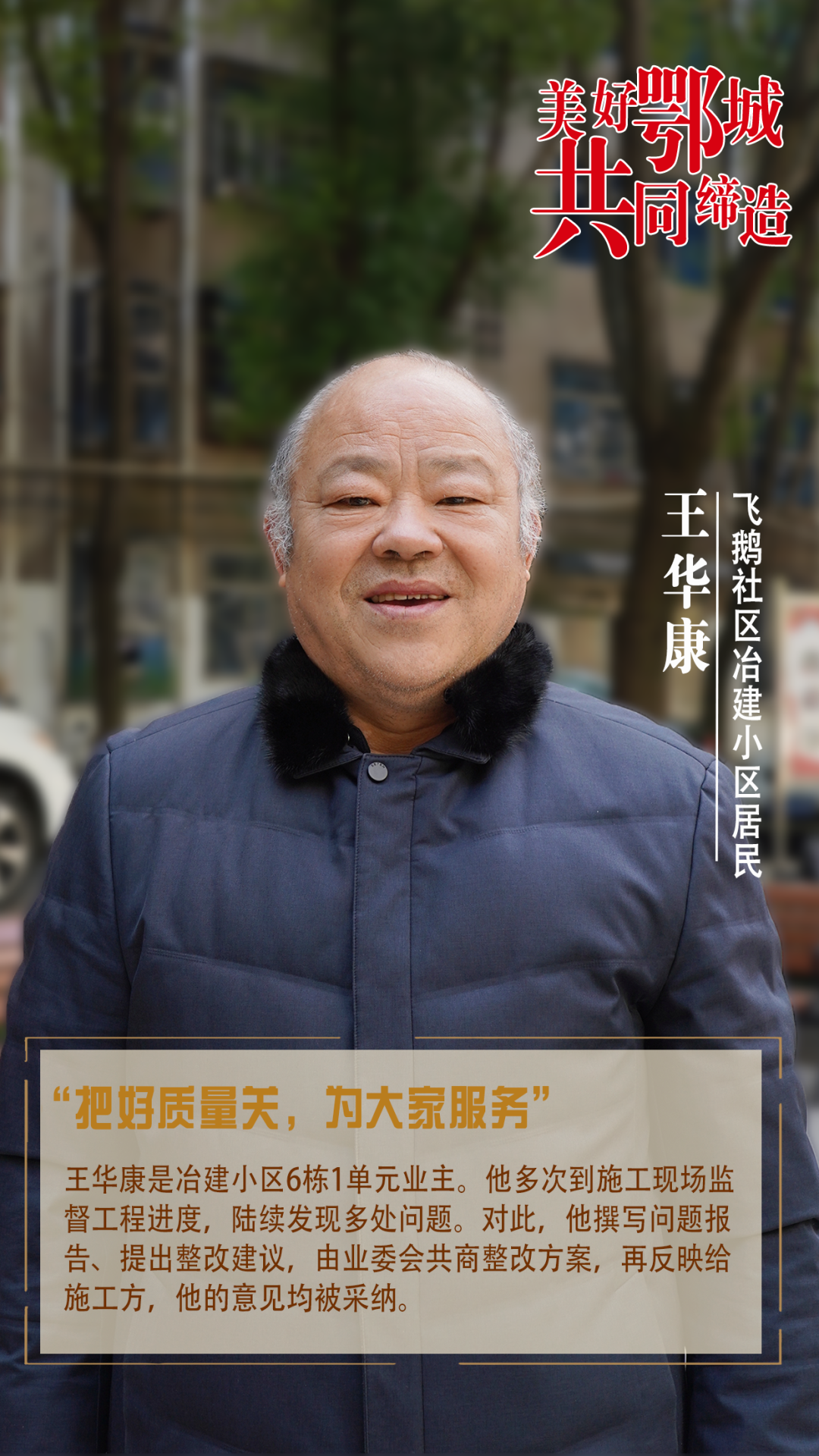 王華康是冶建小區(qū)6棟1單元業(yè)主。他多次到施工現(xiàn)場(chǎng)監(jiān)督工程進(jìn)度,陸續(xù)發(fā)現(xiàn)多處問(wèn)題。對(duì)此,他撰寫(xiě)問(wèn)題報(bào)告、提出整改建議,由業(yè)委會(huì)共商整改方案,再反映給施工方,他的意見(jiàn)均被采納。