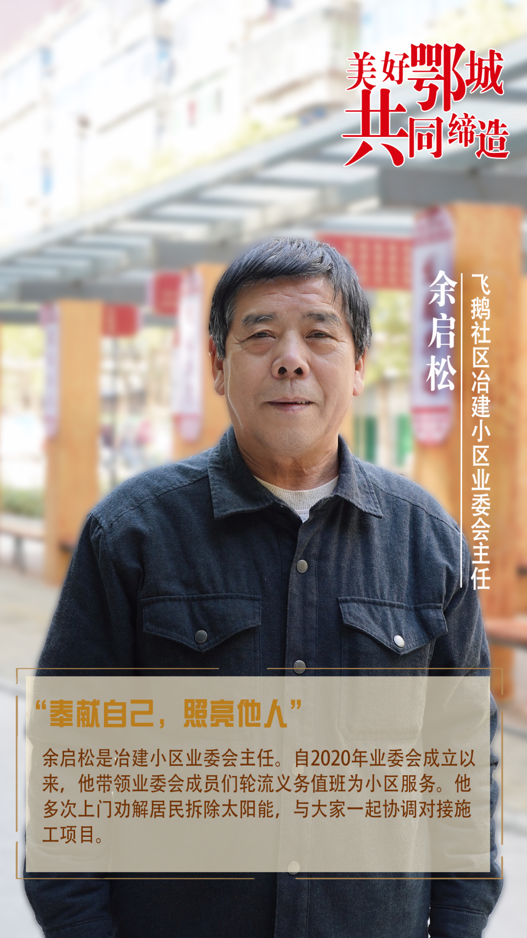 余啟松是冶建小區(qū)業(yè)委會(huì)主任。自2020年業(yè)委會(huì)成立以來(lái),他帶領(lǐng)業(yè)委會(huì)成員們輪流義務(wù)值班為小區(qū)服務(wù)。他多次上門(mén)勸解居民拆除太陽(yáng)能,與大家一起協(xié)調(diào)對(duì)接施工項(xiàng)目。