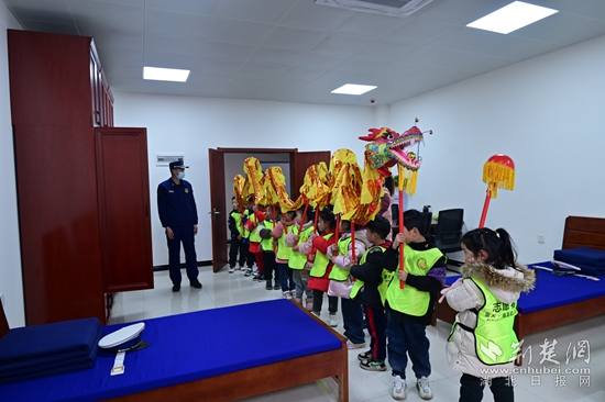 荊楚網(wǎng)(湖北日報網(wǎng))訊(通訊員耿偉鵬)在傳統(tǒng)元宵佳節(jié)即將到來之際,2月3日下午,黃石市西塞山區(qū)藍(lán)天銀晶幼兒園師生代表組建的舞龍隊來到了西塞山區(qū)八泉消防站參觀學(xué)習(xí),與消防指戰(zhàn)員共度元宵佳節(jié)。
