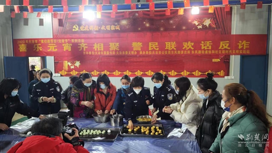 此次活動(dòng)中,東風(fēng)所民輔警還與社區(qū)干部、居民代表一起做游戲,包湯圓、吃湯圓。大冶公安此次的花式鬧元宵既傳承了中華民族傳統(tǒng)節(jié)日的文化習(xí)俗,又讓群眾在歡樂(lè)祥和的節(jié)日氛圍中學(xué)習(xí)了反詐知識(shí),增長(zhǎng)了對(duì)電信網(wǎng)絡(luò)詐騙危害的認(rèn)識(shí),營(yíng)造了群眾參與禁毒反詐斗爭(zhēng)的濃厚氛圍。