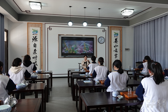 英山地處大別山南麓,是湖北省綠茶主產區(qū)之一。據悉,英山一中的每位學生在校期間要完成6個課時的茶藝課程,其中3節(jié)課用來學習理論知識,包括茶的起源、分類、中國茶文化,以及基本的茶藝禮儀,另3節(jié)課則進行全套茶具實操訓練,完成一個完整的茶藝表演。