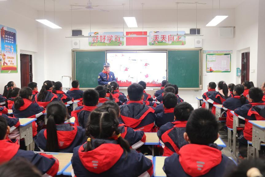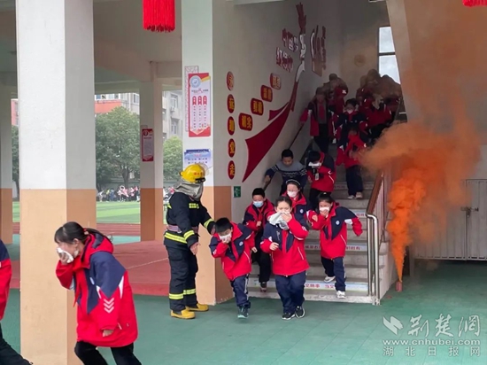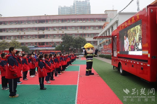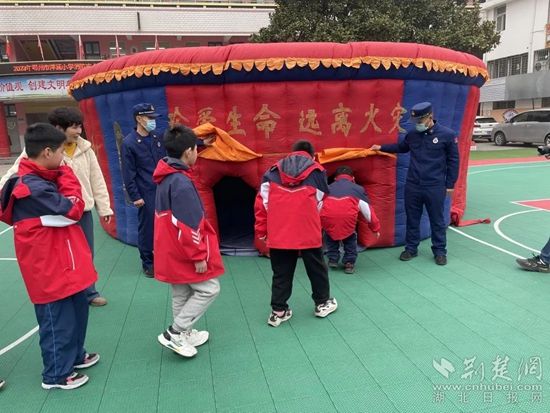荊楚網(湖北日報網)訊(通訊員 陳慧敏 于巧慶) 2月7日下午,隨著亮紅的消防車緩緩駛進操場,鄂州消防大隊的“藍朋友”們來到洋瀾小學,受到了洋瀾小學孩子們的熱烈歡迎。