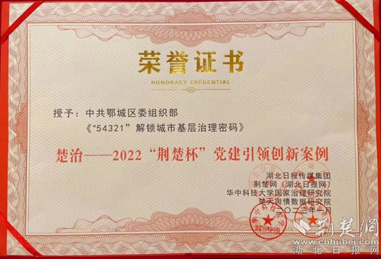 2022“荊楚杯”黨建引領(lǐng)創(chuàng)新案例榮譽證書。通訊員 供圖
