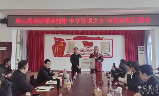 荊楚網(wǎng)(湖北日?qǐng)?bào)網(wǎng))訊(通訊員葉銘鈞、鄭涵)2月25日上午,省中華詩詞協(xié)會(huì)會(huì)長段維一行赴英山縣金家鋪鎮(zhèn)檢查驗(yàn)收湖北省“中華詩詞之鄉(xiāng)”創(chuàng)建工作,現(xiàn)場授予金家鋪鎮(zhèn)“中華詩詞之鄉(xiāng)”,龍?zhí)逗哟?、龍珠村、楊家河村“中華詩詞之村”,金鋪中心小學(xué)“中華詩教先進(jìn)單位”稱號(hào)。