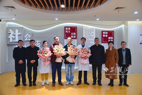 陽新縣人民醫(yī)院領(lǐng)導(dǎo)和連云港第四批援陽專家合影。通訊員 程婭 攝