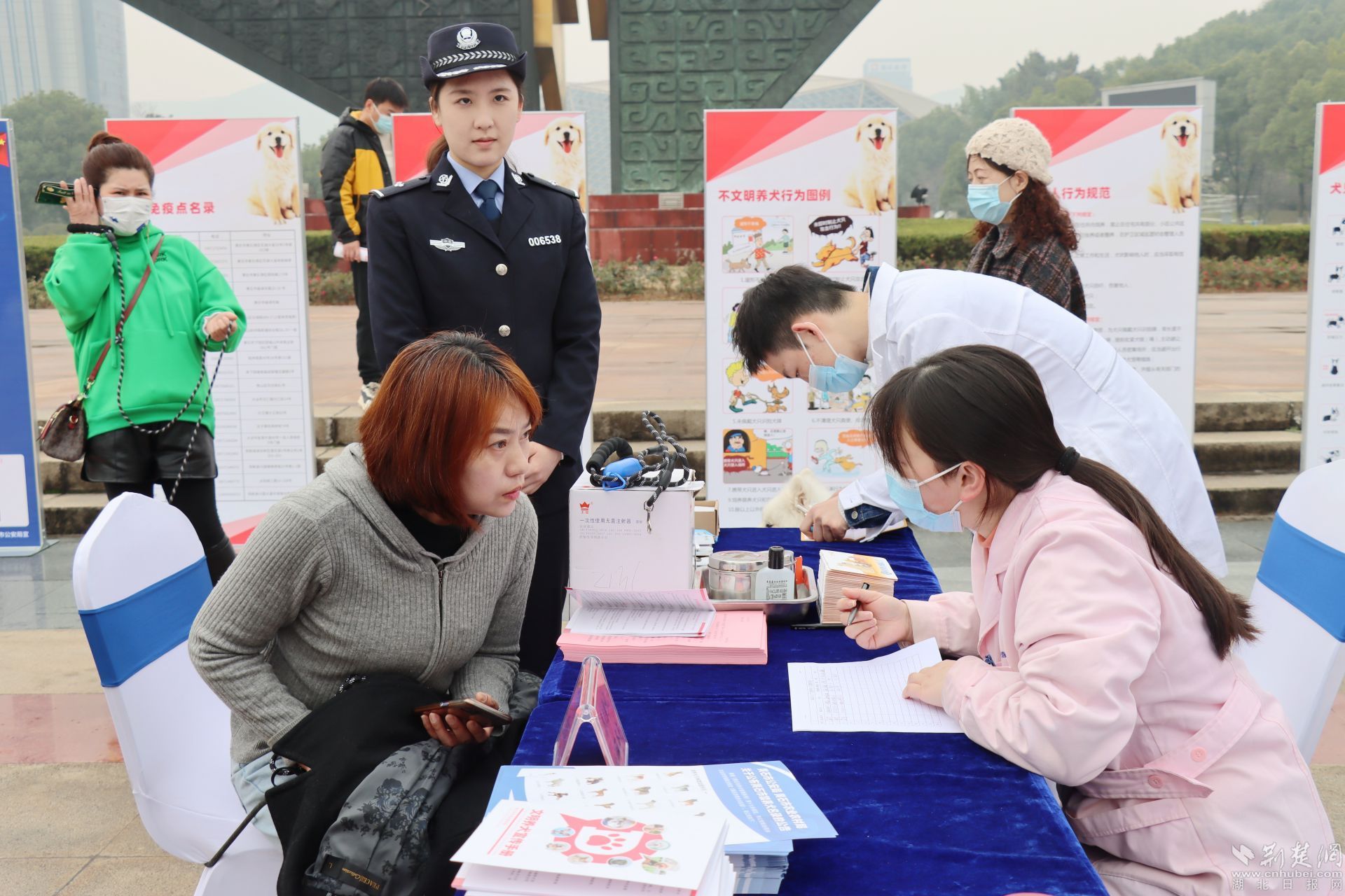 上午9點(diǎn),黃石市公安局、市城管委等多家養(yǎng)犬管理責(zé)任單位及市小動(dòng)物保護(hù)協(xié)會(huì)、養(yǎng)犬登記便民務(wù)點(diǎn)在市人民廣場(chǎng)設(shè)立便民咨詢點(diǎn),現(xiàn)場(chǎng)為前來(lái)咨詢的養(yǎng)狗市民發(fā)放宣傳資料并進(jìn)行答疑解惑。