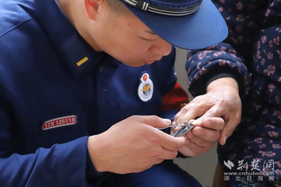 荊楚網(wǎng)(湖北日報網(wǎng))訊(通訊員 黃消宣)在第60個學雷鋒紀念日來臨之際,黃石市消防救援支隊大冶大隊走進華祺老年公寓開展“學雷鋒、送溫暖、獻愛心”活動。為老人修剪指甲、聊天解悶,講解應急科普知識……“火焰藍”用實際行動為老人們送去溫暖和祝福,養(yǎng)老院內(nèi)歡聲笑語此起彼伏。