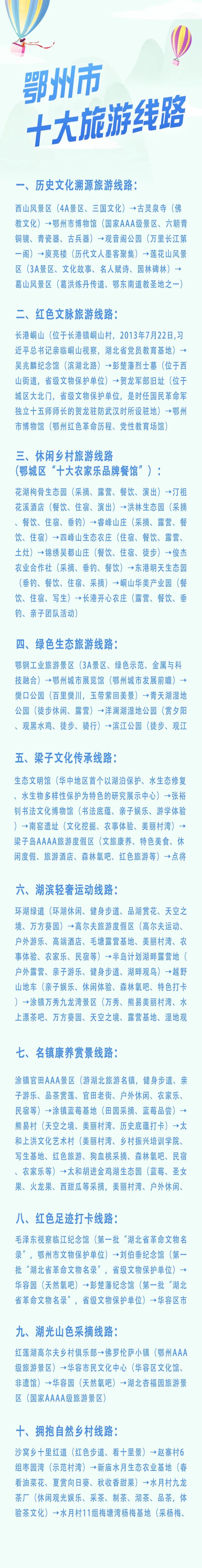 本次旅游周(5月19日-25日)還將舉辦各類主題活動,與全城人民相約,共同欣賞和感受鐘靈毓秀的自然風光、多姿多彩的人文底蘊、日新月異的城鄉(xiāng)發(fā)展,以及69萬鄂城人民美好生活的幸福圖景。