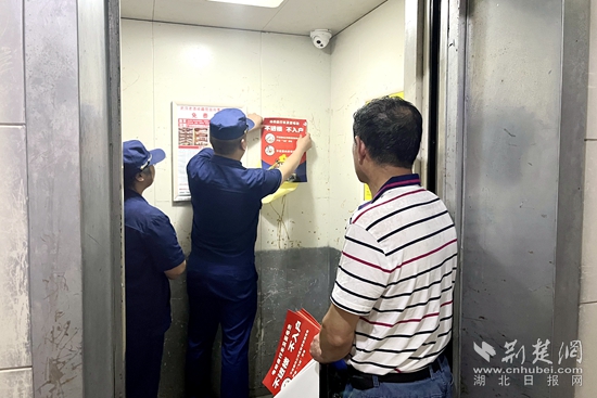 對(duì)此,檢查人員要求物業(yè)管理單位要積極通過業(yè)主群發(fā)送安全警示、入戶宣傳提示等方式加強(qiáng)宣傳教育,同時(shí)加強(qiáng)日常巡查檢查,及時(shí)消除隱患。隨后,檢查人員和物業(yè)人員在小區(qū)宣傳欄、電梯內(nèi)、樓道口等位置張貼電動(dòng)車消防宣傳海報(bào),提示居民規(guī)范使用電動(dòng)車。