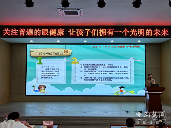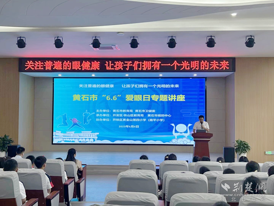 當天,由黃石市教育局、黃石市衛(wèi)健委主辦,開發(fā)區(qū)·鐵山區(qū)教育局承辦的“6·6全國愛眼日——關(guān)注普遍的眼健康”科普教育講座活動,在黃金山第四小學舉行。
