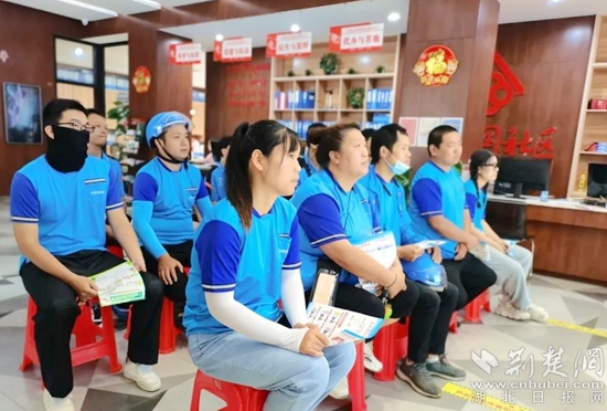 社區(qū)網(wǎng)格員為“藍騎士”們發(fā)放消防安全、預防溺水、防范詐騙等宣傳資料,動員他們在提升自身安全防護意識的同時,也通過優(yōu)質(zhì)文明的配送服務(wù)把“人人講安全 個個會應(yīng)急”的理念傳遞給更多人。