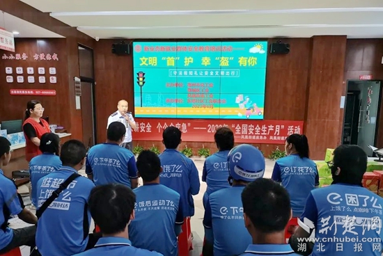 活動特別邀請市公安局交通管理局五大隊一中隊鳳凰分隊的趙錦雄為社區(qū)新業(yè)態(tài)新就業(yè)服務(wù)聯(lián)盟成員單位——“餓了么”長江天下站的“藍騎士”們上了一堂精彩又實用的交通安全教育課。