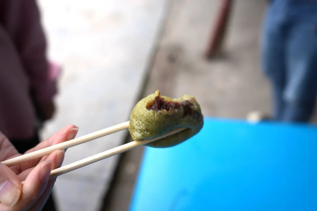 采艾草最鮮嫩的葉尖兒煮沸后過濾出青色汁液