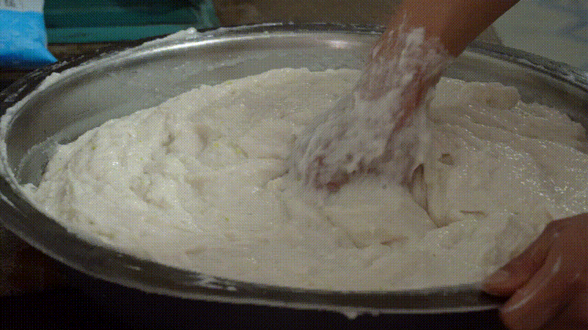 加入面粉揉成面團(tuán)