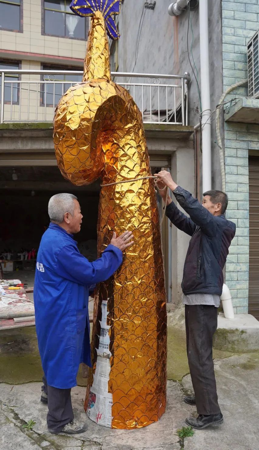 他扎制的旱龍舟