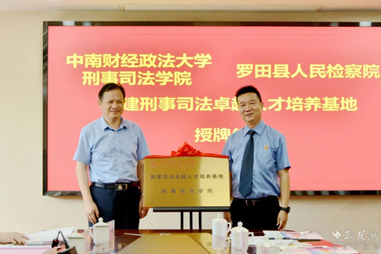 荊楚網(wǎng)(湖北日報網(wǎng))訊(通訊員王章?。?/strong> “預(yù)祝我們將基地建設(shè)成品牌,出課題、出成果、出人才。”7月19日,在一片熱烈的掌聲中,中南財經(jīng)政法大學刑事司法學院與羅田縣人民檢察院共建刑事司法卓越人才培養(yǎng)基地簽約揭牌儀式圓滿舉行。