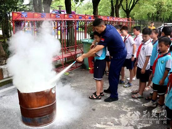 為了讓小朋友們更直觀地了解到滅火器的使用方法,消防員在講解示范滅火器“提拔握壓”的使用方法后,手把手讓小朋友們體驗滅火器的使用。接著,消防員為小朋友們講解了滅火救援服和搶險戰(zhàn)斗服的用途,孩子們爭前恐后的戴上了不同的消防頭盔和帽子,切實體驗了消防員的生活。
