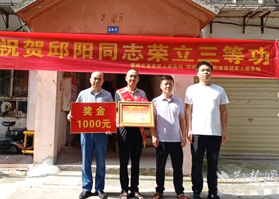 荊楚網(wǎng)(湖北日?qǐng)?bào)網(wǎng))訊(通訊員丁元中)7月26日上午,鄂城區(qū)退役軍人事務(wù)局副局長陳海鵬一行到鳳凰街道濱湖社區(qū)為榮立三等功的現(xiàn)役軍人邱陽家人送去立功喜報(bào)和慰問金,為他們送上黨和政府的親切關(guān)懷。