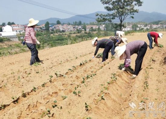 今年3月20日,該公司與該鎮(zhèn)毛畈村簽訂農(nóng)業(yè)訂單,按照“三統(tǒng)一分”(統(tǒng)一供苗、統(tǒng)一技術(shù)指導、統(tǒng)一保底價回收,分戶種植)模式,在毛畈村建立300畝紅苕種植基地。