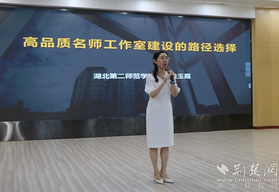 開班儀式結(jié)束后,湖北第二師范學(xué)院教授、基礎(chǔ)教育研究中心主任、特級教師、湖北名師涂玉霞作題為《高品質(zhì)工作室建設(shè)的路徑選擇》的主題講座。她圍繞工作室文化建設(shè)、運(yùn)行方式、成果彰顯三大塊,結(jié)合名師工作室積累的豐富案例、豐厚經(jīng)驗和豐碩成果,系統(tǒng)地分享了高品質(zhì)工作室建設(shè)路徑、策略與方法。