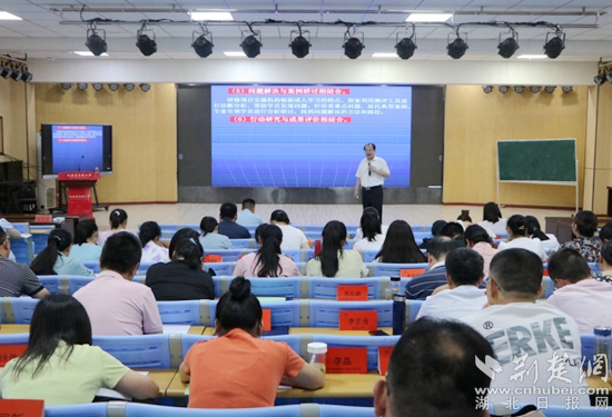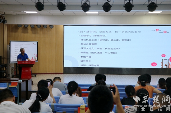 8月16日上午,黃石八中總校長、特級教師、正高級教師郭茂榮作題為《務(wù)教育之本 悟成長之道—教師工作坊建設(shè)的實踐與思考》的主題講座。他通過成長經(jīng)歷和典型案例,運(yùn)用風(fēng)趣的語言深刻詮釋了“立德樹人是教育之本,知其心是教師之本,悟其道是成長之要”,還交流了教師工作坊建設(shè)、運(yùn)行、管理、評價等方面的經(jīng)驗。
