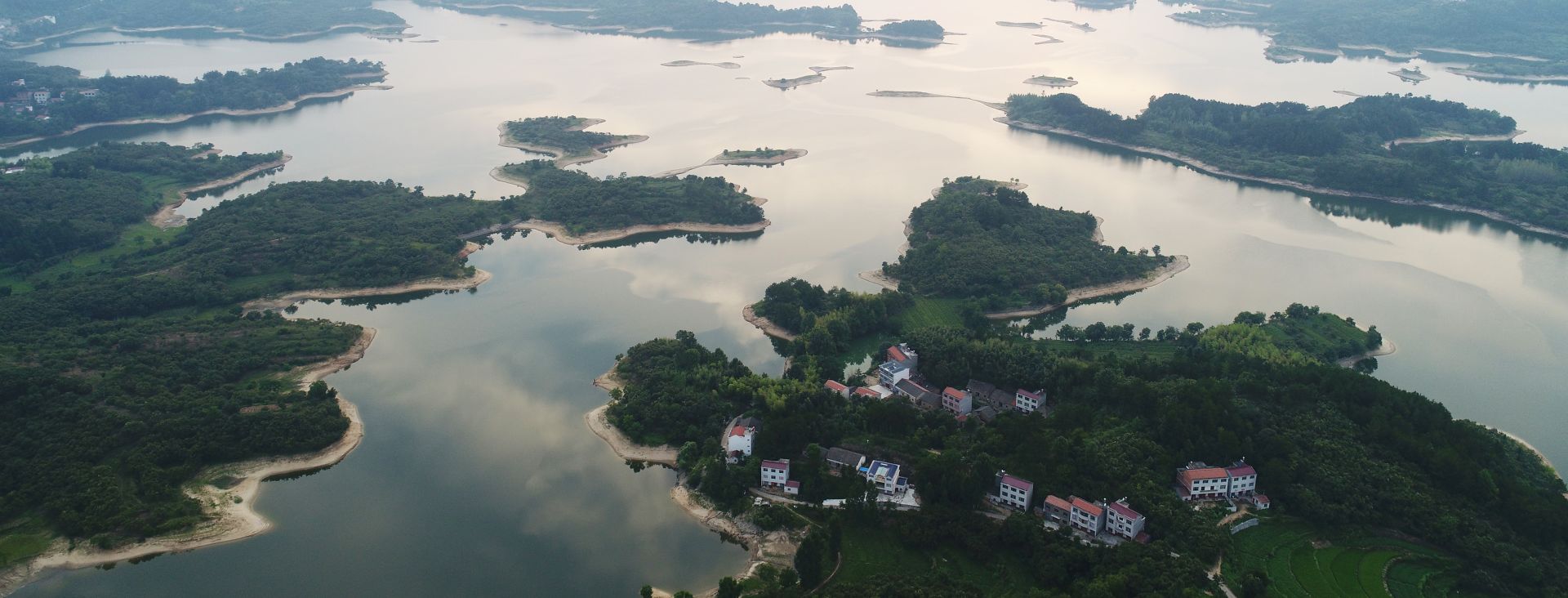 明山水庫,煙波浩渺,蜿蜒曲折,其狀如龍,栩栩如生,群山環(huán)抱,風(fēng)景秀麗。