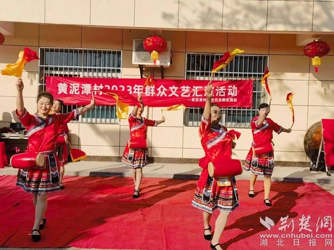 12月2日,一場以共同締造為主題的綜合性文藝匯演在陶店鄉(xiāng)黃泥潭村開展?,F(xiàn)場人頭攢動,氛圍火熱,參加的村民都齊齊叫好,紛紛點贊?!按謇锔阄乃嚤硌?,還有百家宴,好多人都在這里玩”。村民余大姐正在給外地務(wù)工丈夫通電話。