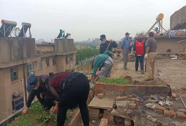 確定改造方案后,市委組織部與雷山社區(qū)黨委積極召開34棟黨員會議,統(tǒng)一思想認(rèn)識,并商討居民籌集資金方案。由社區(qū)主導(dǎo)召開多次樓棟代表大會,在黨小組、黨群中心戶中推選天面自治治理小組成員形成自治力量,共同商議討論,細(xì)化資金收取及治理方案,逐步完善細(xì)化天面整治12步,五大行動(dòng)方案。