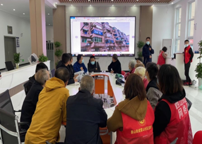 在34棟天面整治項(xiàng)目中,雷山社區(qū)通過“線上+線下”創(chuàng)新共謀方式對居民需求摸底,引導(dǎo)居民參與建言獻(xiàn)策,搭建社區(qū)議事廳-網(wǎng)格驛站-議事點(diǎn)等共謀陣地5處,從居民反映最強(qiáng)烈為主進(jìn)行開展入戶摸排了解情況。