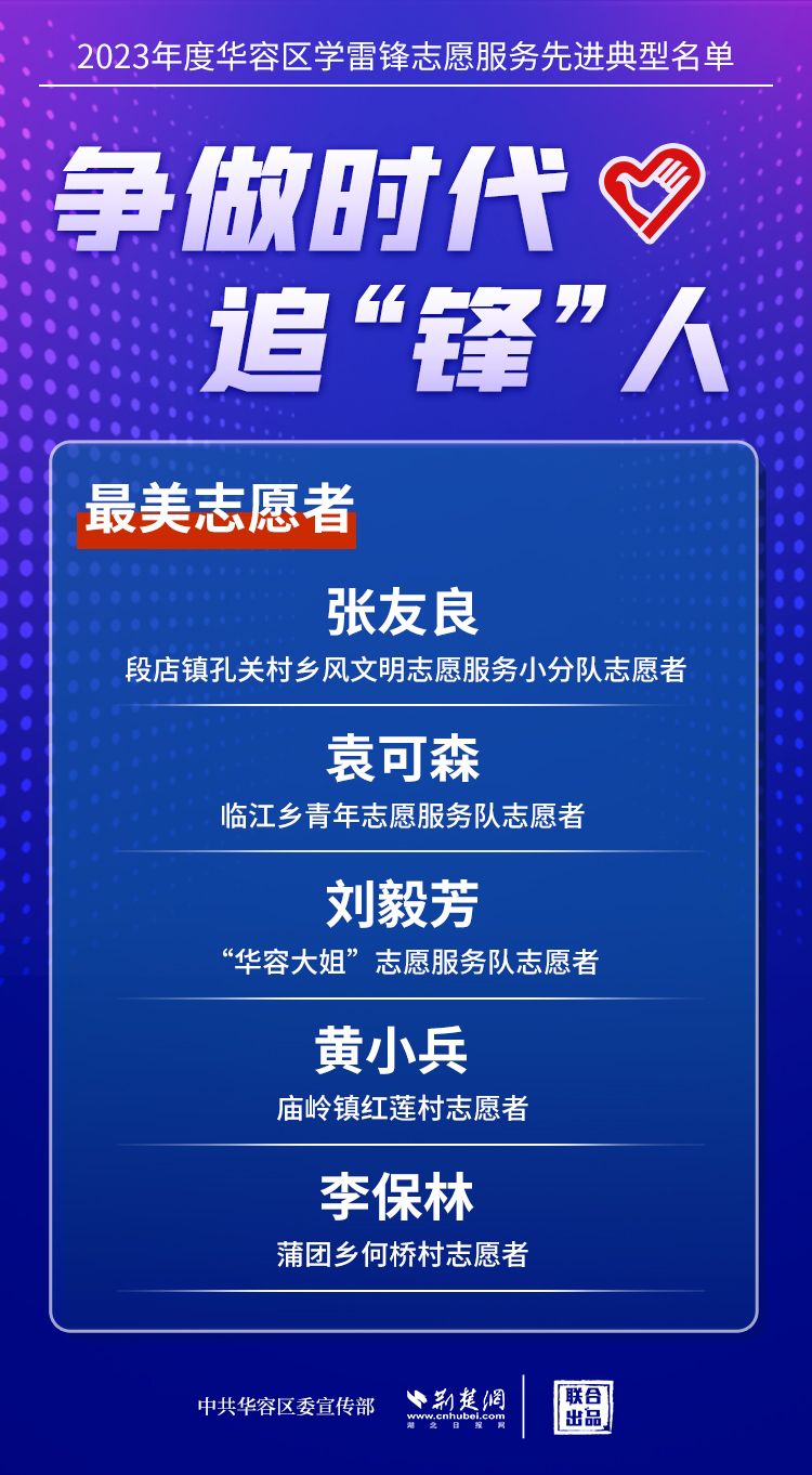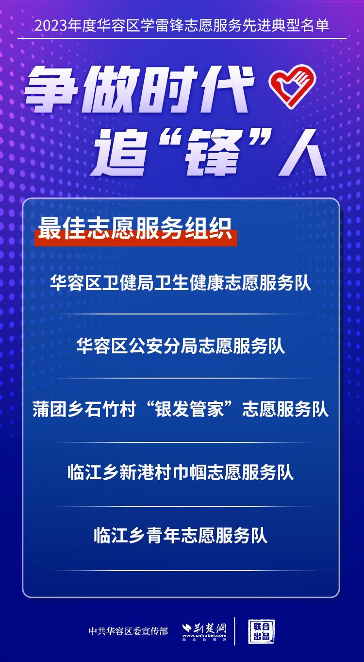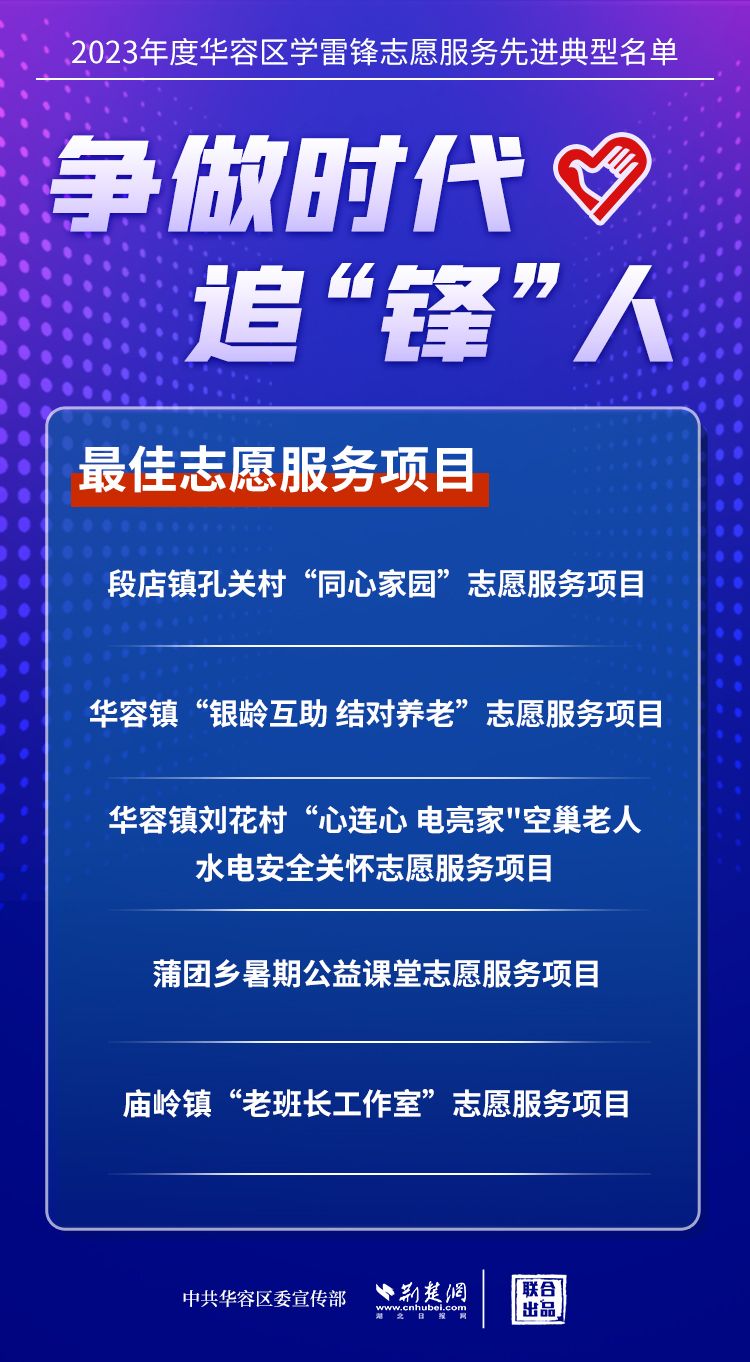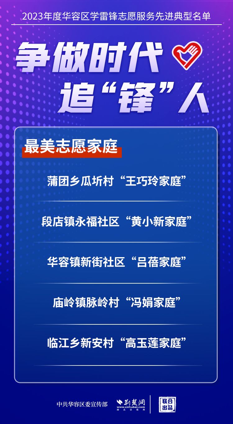 荊楚網(wǎng)(湖北日?qǐng)?bào)網(wǎng))訊(記者王焱堯 通訊員劉佳源)最美志愿者、最佳志愿服務(wù)組織、最佳志愿服務(wù)項(xiàng)目、最美志愿家庭……3月5日,武漢新城展示中心,鄂州市華容區(qū)公布2023年度學(xué)雷鋒志愿服務(wù)先進(jìn)典型名單。