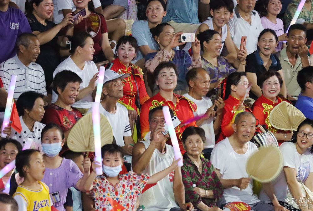 華燈初上,匡河小學(xué)籃球場熱鬧非凡,驕陽似火,酷暑難耐,但是依然擋不住球迷們的熱情,村民們揮舞著國旗,加油聲、喝彩聲一浪高過一浪,享受著體育競技活動帶來的樂趣。