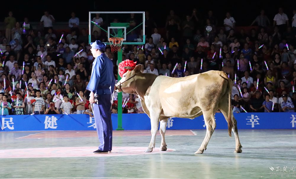 19時30分許,開幕式開始,聲聲震天的威風(fēng)鑼鼓、剛勁有力的武術(shù)表演、青春動感的健身舞蹈以及活力十足的歌曲串燒,一次次引來現(xiàn)場的歡呼喝彩。當(dāng)工作人員牽著“冠軍?!边M入場地那一刻,現(xiàn)場的熱烈氛圍再次被引向高潮。