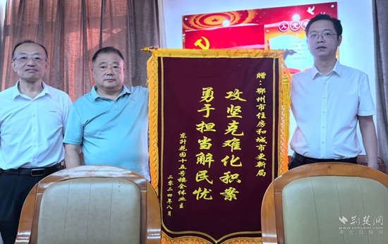 荊楚網(wǎng)(湖北日報(bào)網(wǎng))訊(記者王焱堯)攻堅(jiān)克難化積案,勇于擔(dān)當(dāng)解民憂。8月30日上午,鄂州市東升花園小區(qū)15號樓業(yè)主代表周克東、胡德江給鄂州市住更局送去一面錦旗。