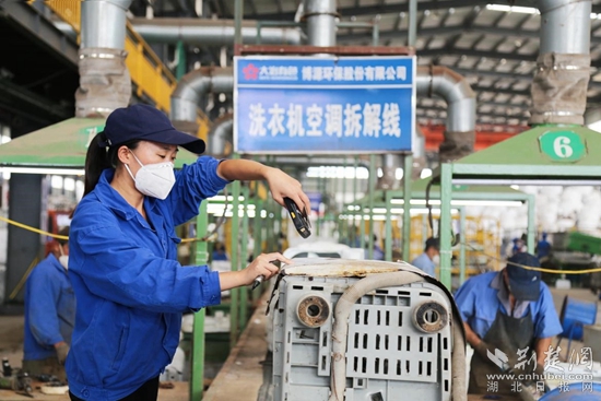 走進(jìn)位于大冶湖高新區(qū)攀宇工業(yè)園博源環(huán)保公司,倉庫內(nèi)廢舊家電堆積如山,拆解線上一片繁忙,一臺(tái)臺(tái)冰箱從流水線上進(jìn)入破碎機(jī)后,經(jīng)過磁選、色選、比選……塑料、玻璃、金屬各落各袋。該公司副總經(jīng)理劉國平說,年處理廢棄電器產(chǎn)能150萬臺(tái),僅今年“五一”期間,黃石首屆家電“以舊換新”消費(fèi)展就一次性回收舊家電5000臺(tái),交由博源環(huán)保公司拆解處理。