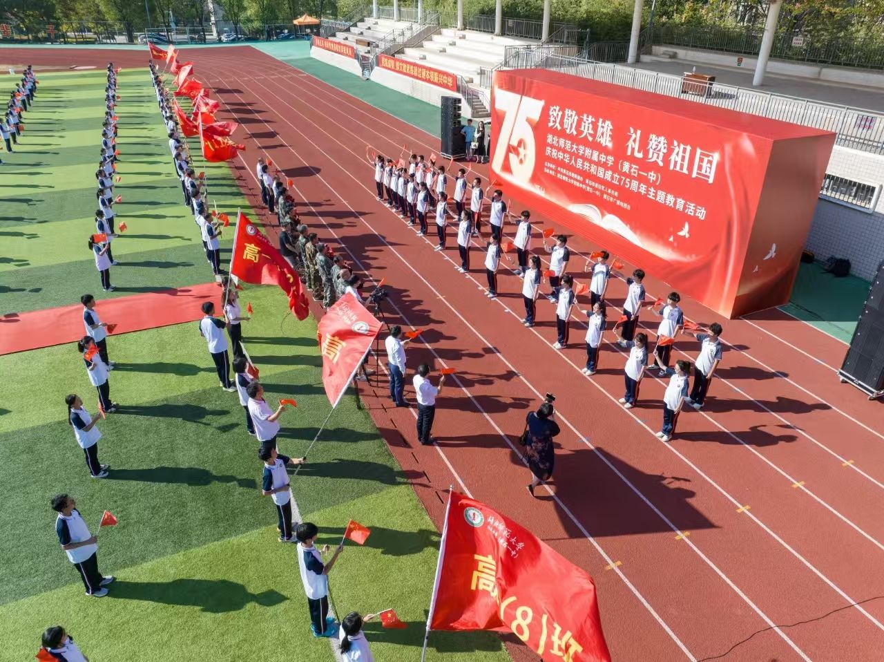 9月29日上午,國(guó)慶節(jié)臨近,“致敬英雄 禮贊祖國(guó)”——湖北師范大學(xué)附屬中學(xué)(黃石一中)慶祝中華人民共和國(guó)成立75周年活動(dòng)舉行?;顒?dòng)通過走一次紅地毯、唱一首主題歌、獻(xiàn)一束手捧花、送一本報(bào)道集等形式,致敬為共和國(guó)無私奉獻(xiàn)的英雄們。
