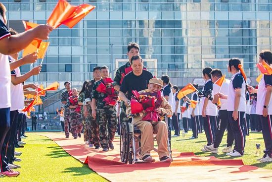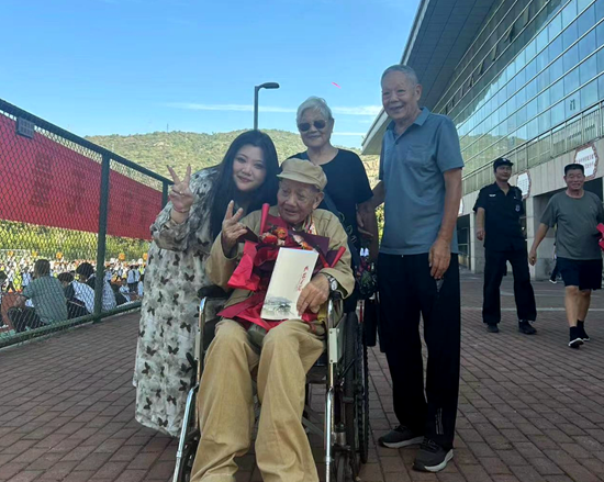 荊楚網(wǎng)(湖北日報網(wǎng))訊(記者呂鑒蕾、通訊員黃旺宣、范晨熠、李?。?月29日,湖北師范大學(xué)附屬中學(xué)(黃石一中)操場,當(dāng)98歲的老兵由家人推著輪椅,緩緩走上紅地毯時,現(xiàn)場爆發(fā)出雷鳴般的掌聲。