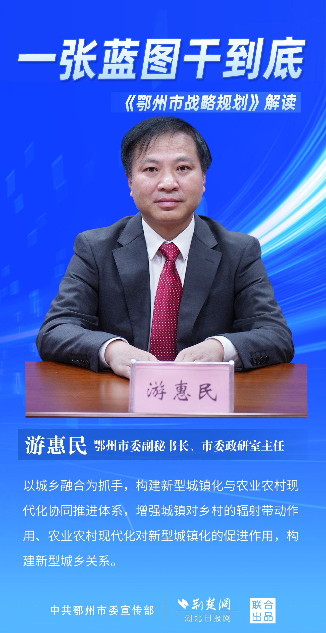 荊楚網(wǎng)(湖北日報網(wǎng))訊(記者 劉璐、金康 通訊員 胡彥)11月7日上午,鄂州市召開新聞發(fā)布會,宣布《鄂州市戰(zhàn)略規(guī)劃》即將印發(fā)實施。市委副秘書長、市委政研室主任游惠民透露,從機(jī)制優(yōu)化、指標(biāo)考核、項目實施等方面確保規(guī)劃制度有依據(jù)、成效可考核、實施有抓手。具體如何落實落地?讓我們用一組海報解讀《鄂州市戰(zhàn)略規(guī)劃》。