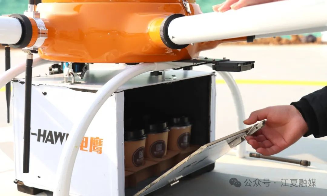 “從無(wú)人機(jī)起飛、取單到配送,全程耗時(shí)僅約5分鐘?!痹诘涂瘴锪髋渌头?wù)演示環(huán)節(jié),電鷹科技研發(fā)的EHM-1600物流無(wú)人機(jī)為現(xiàn)場(chǎng)嘉賓送來(lái)8杯咖啡外賣(mài)。據(jù)了解,電鷹速遞試運(yùn)營(yíng)階段已累計(jì)飛行150余架次,完成文件、餐飲、重要物品等不同種類不同形態(tài)物資低空配送并取得詳細(xì)運(yùn)行數(shù)據(jù)。