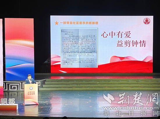 荊楚網(wǎng)(湖北日報網(wǎng))訊(記者 左乙辰 通訊員 羅成、柯軍才、陳帥)“年齡大了腿腳不方便,幾位鄰居中風(fēng)在家,行動受限……今年6月份開展的免費理發(fā)便民服務(wù),對我們小區(qū)的高齡老人、老黨員很受益……”12月26日下午,大冶市舉行第二屆新時代文明實踐項目展示交流活動上,“善心義剪”項目代表展示了一封來自銅草社區(qū)居民盧云健的感謝信。