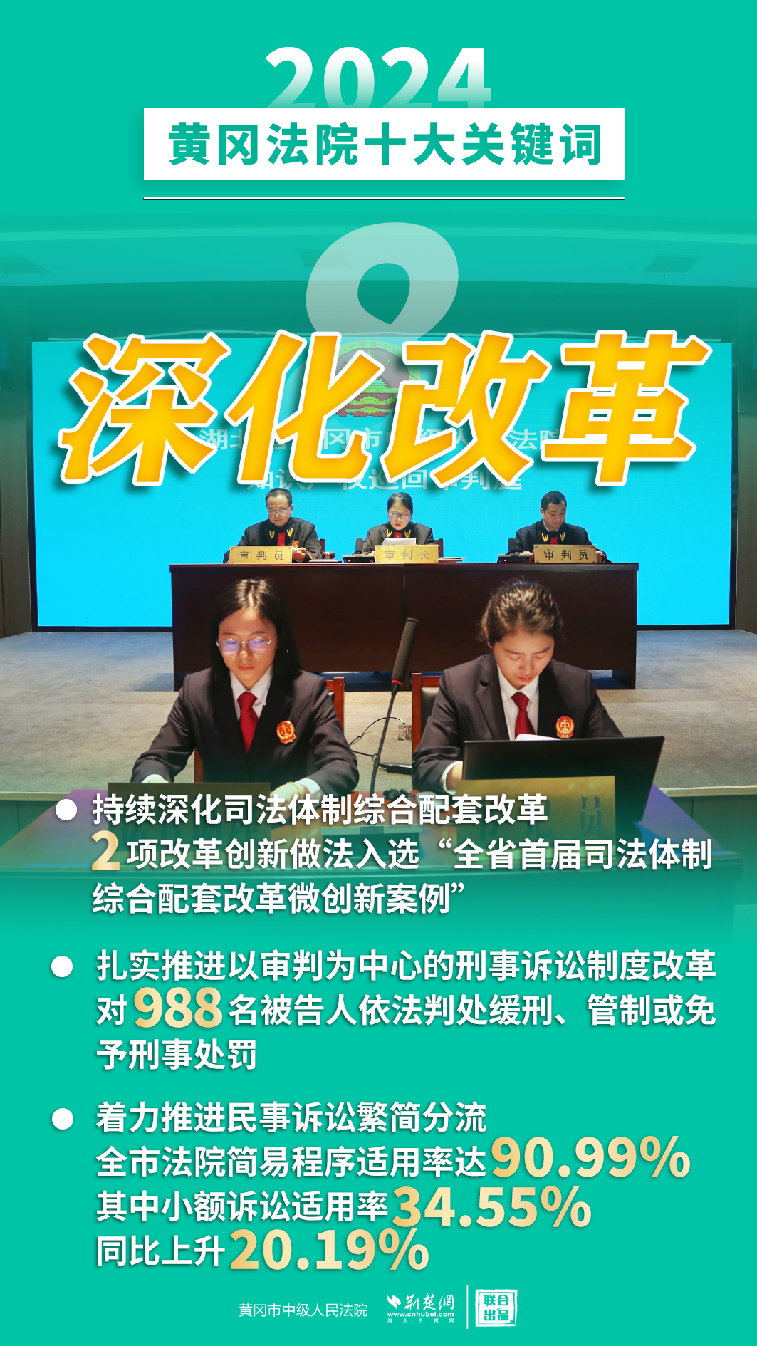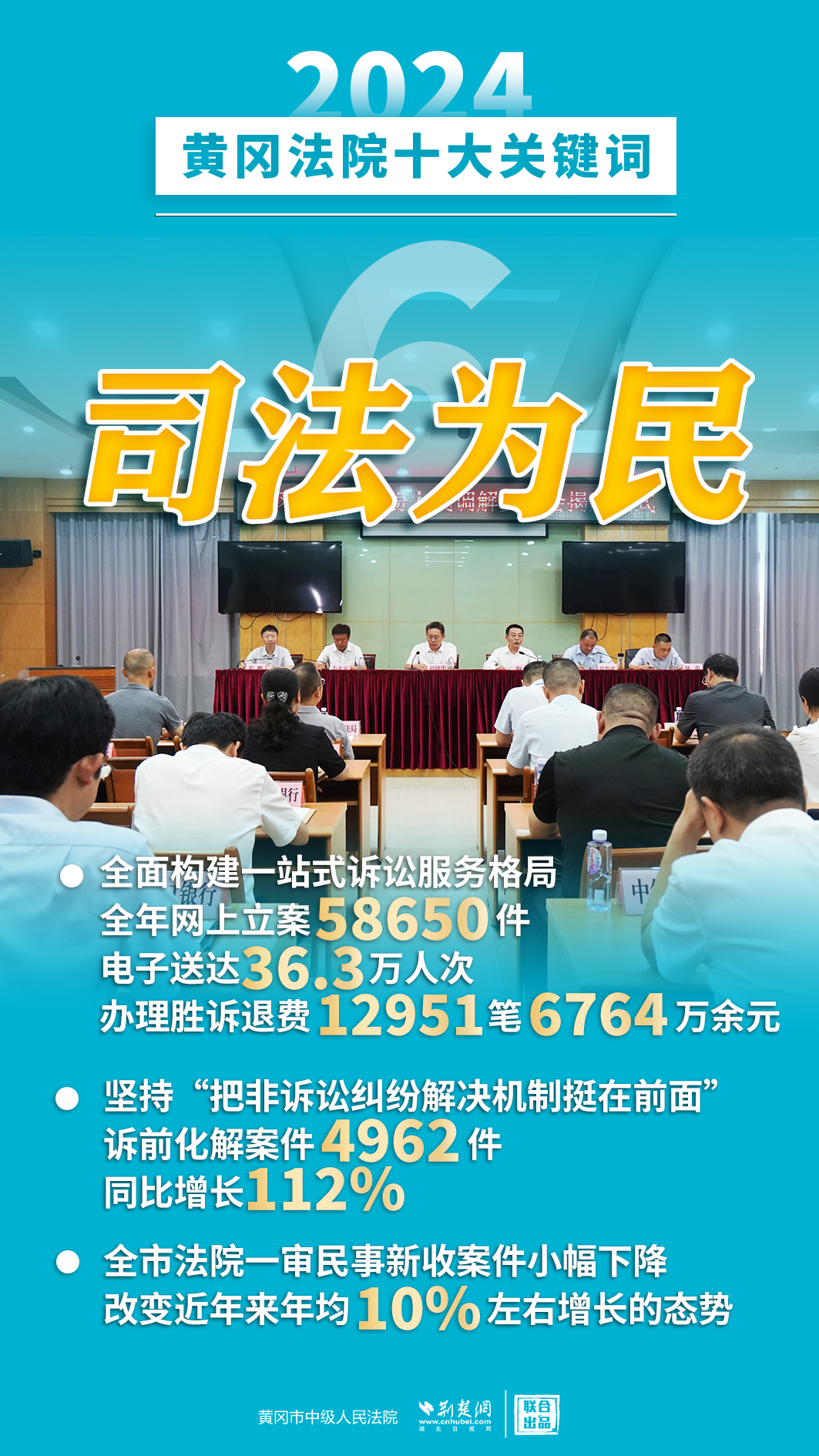 2024年,黃岡法院深入學(xué)習(xí)貫徹黨的二十屆三中全會(huì)精神,認(rèn)真落實(shí)黨中央決策部署和省委、市委工作要求,忠誠(chéng)履職、擔(dān)當(dāng)作為,著力護(hù)航經(jīng)濟(jì)高質(zhì)量發(fā)展、助推社會(huì)高效能治理、守護(hù)群眾高品質(zhì)生活,各項(xiàng)工作取得新發(fā)展、實(shí)現(xiàn)新突破。