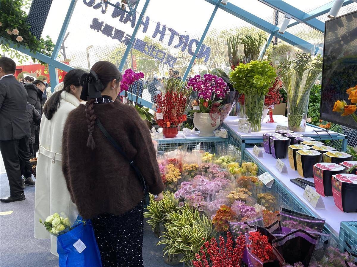 在鮮花展區(qū),厄瓜多爾玫瑰、坦桑尼亞鐵線蓮、南非紅帝王花、荷蘭丁香花和彼岸花、墨西哥跳舞蘭等花卉漂洋過海而來,與來自中國云南、海南等地的香水百合、雛菊、轉(zhuǎn)運(yùn)竹等各色花卉植物爭奇斗艷。